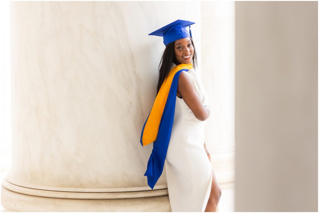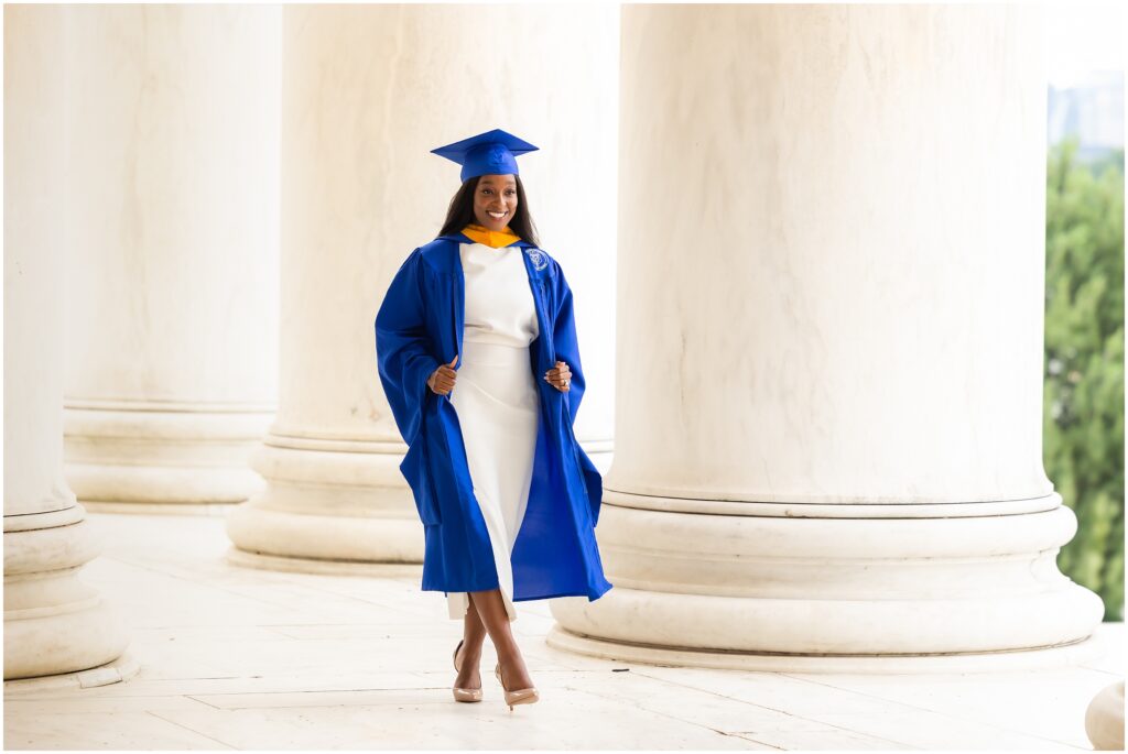 It doesn’t feel like it’s already been eight months since this beautiful Grad Session at the Jefferson Memorial. We had to overcome some significant logistical challenges due to a 10k run that closed off all the surrounding streets to the Jefferson, but my lovely client and and I did prevail and made some beautiful images in celebration of her accomplishments. A graduate degree from Marymount University and a mom of an infant – I am absolutely in awe of her.