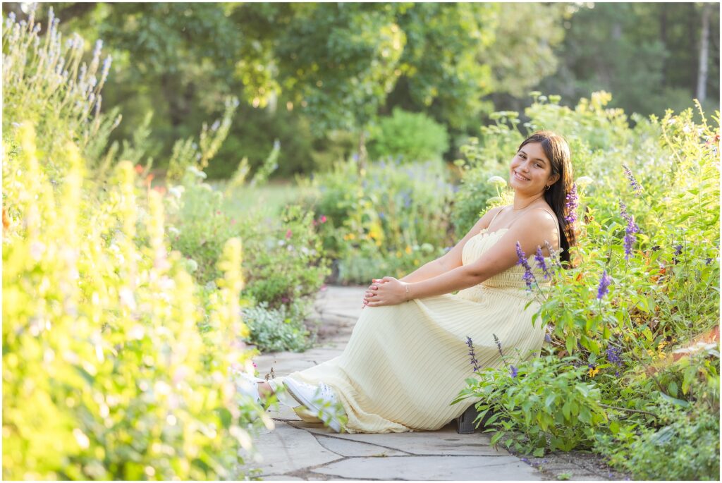 The idea of a late summer breeze, spaghetti straps, and pretty flowers seems unreal right now when you might feel stuck in the depth of winter and bundled up to the nose. I’m finally sharing some favorites of this late August session with my radiant and beautiful senior client at Green Spring Gardens in Alexandria. An early weekday morning was excellent timing for a relaxed time exploring this floral neighborhood gem. It’s large enough to provide a variety of settings and compact enough to make moving about a breeze. Thank you to the Master Gardeners who keep the park beautiful and neat at any time of the year.